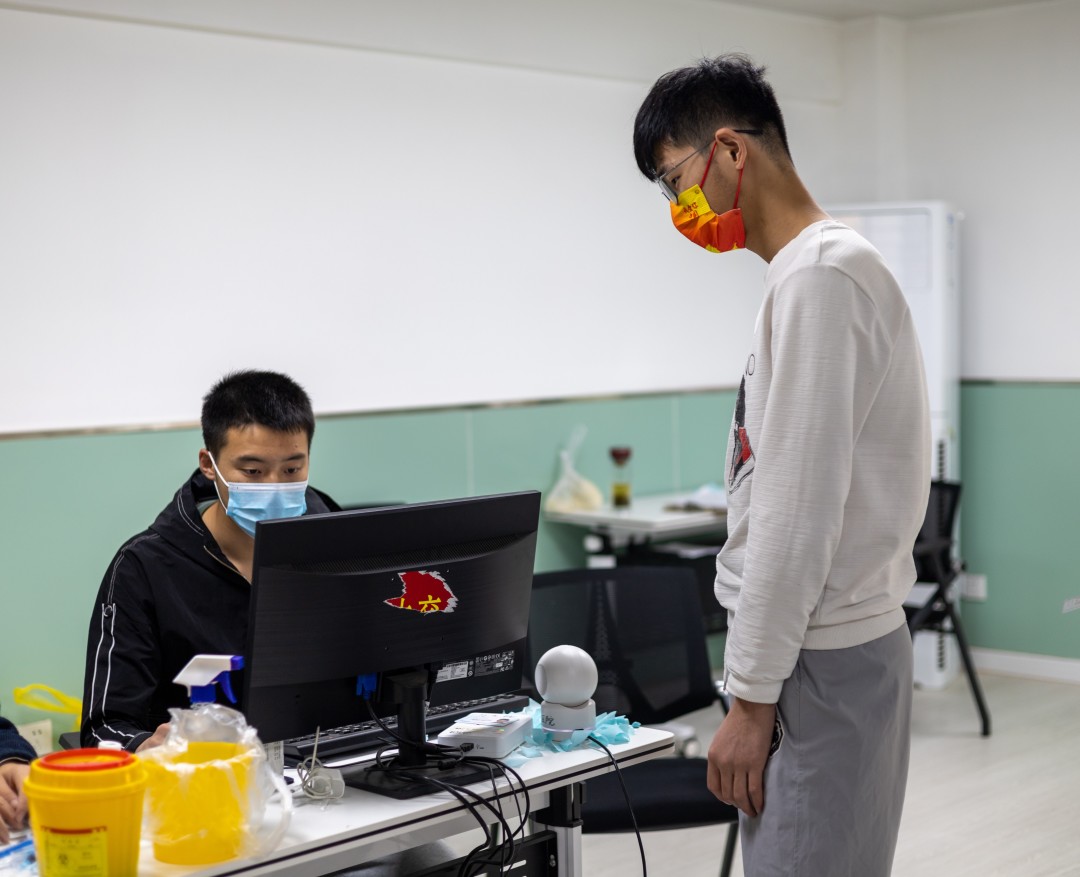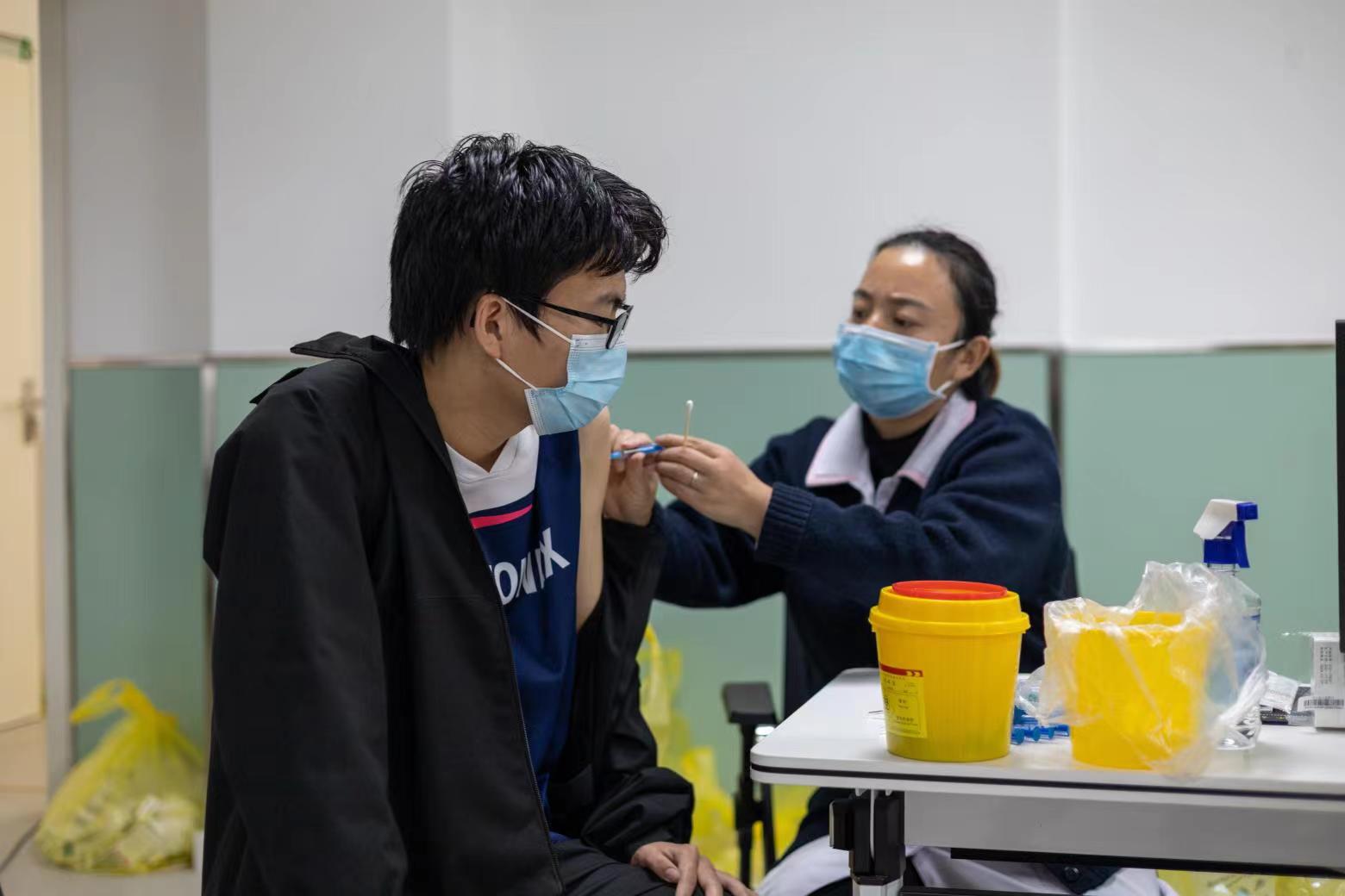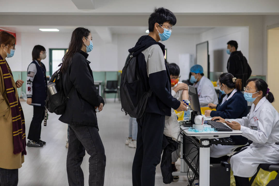 新生排队等候接种疫苗