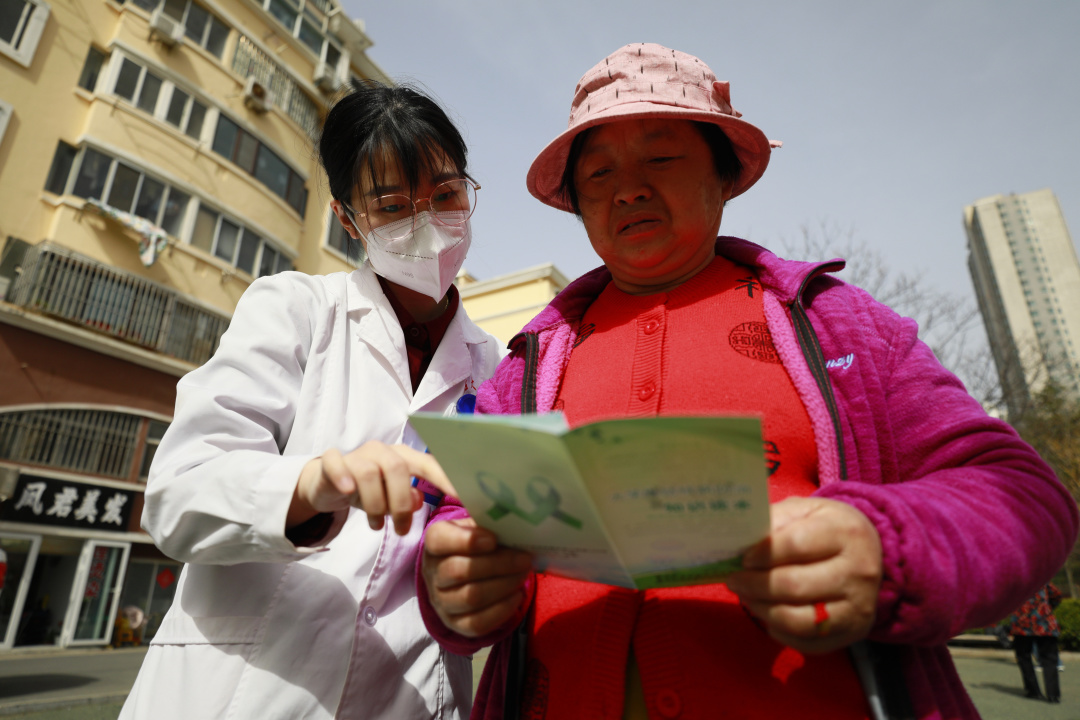 3月23日,中国石油大学(华东)医院的医务人员和校红十字会的师生志愿者走出校园,走进青岛西海岸新区的唐岛湾A小区,举办以“你我共同努力,终结结核流行”为主题的“世界防治结核病日”宣传教育活动。