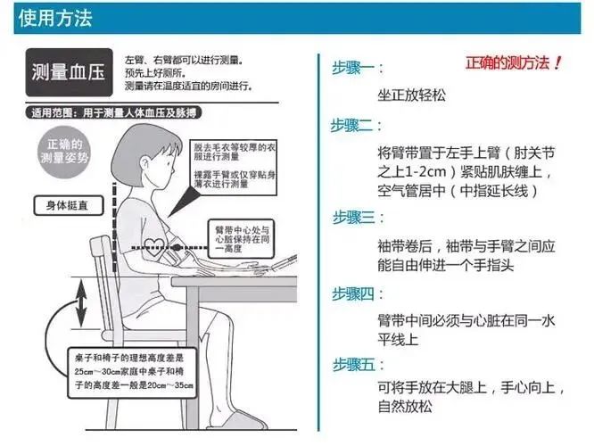测量前至少休息5min,放松心情,尽量不引起自身紧张(如膀胱充盈),不应饮用有一定提神作用的饮品,如咖啡、茶等。尽量选择安静,受到外界干扰较少的环境。坐位,双脚自然着地;裸臂绑好袖带,袖带大小合适;袖带必须与心脏保持同一水平。