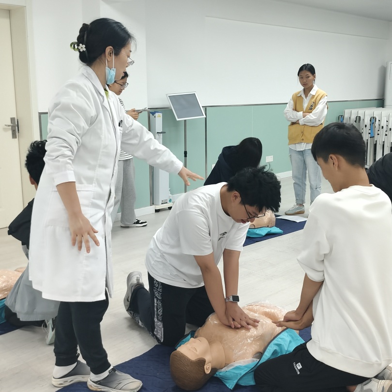 必赢3003no1线路检测中心医务人员向参加的活动同学们进行了专业、严谨且精彩的“心肺复苏”急救知识和技能的培训与展示,号召广大师生“人人学急救、人人会急救”,进一步增强了同学们对急救知识的了解。